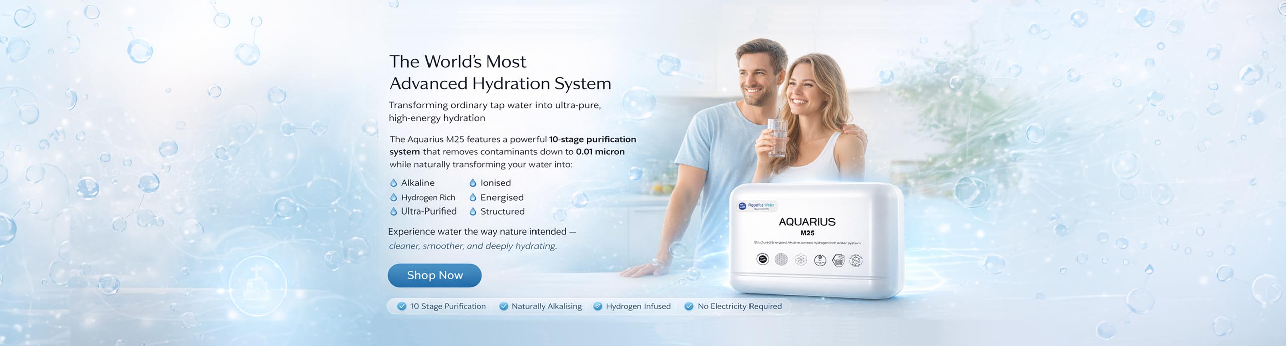 10 Stage purifier that alkalises, ionises and energizes your water, it creates Natural Hydrogen and Restructures your water for the best hydration possible.